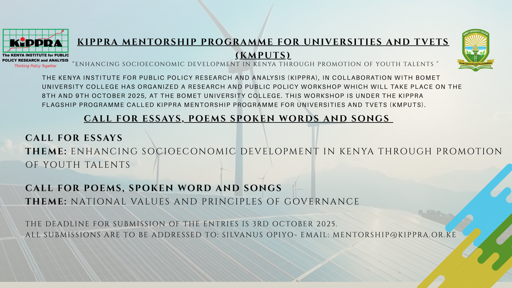 Bomet University College(BUC) is a Constituent College of Moi University established under a Legal Notice Number 145 of 27th July 2017. BUC is the first public University in Bomet County and is strategically placed at the heart of Bomet Town, Bomet County. Its establishment is a step towards realization of a fully-fledged University in line with the government policy to establish at least one University in every County.